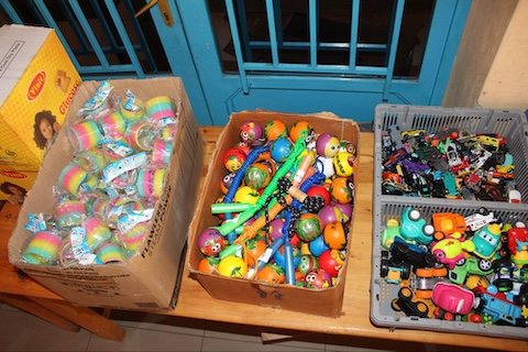 Slinkies, balls, jump ropes, cars of all shapes and sizes.