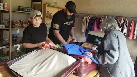 Unpacking and distributing the contents had priority. After a rest day, our staff, Tim, and Mason went to work immediately unpacking, sorting, and distributing the contents.