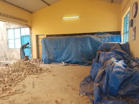 On the left is the door into the Library. On the right is the door to the activity Room. Space between the buildings will no longer exist, connecting the two buildings into one.